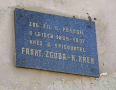 Na návsi, na místě staršího kostela r.1807, věž původní Fara Zdroj C)