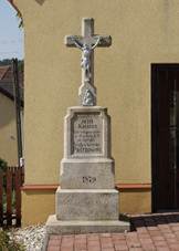 Kaple Na návsi, 1838 Kamenný kříž Před kaplí, 1879 Kamenný kříž Před školou, 1893 Kamenný kříž U silnice z Okříšek, Františka a