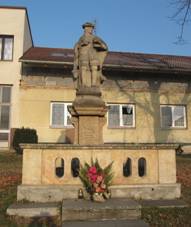 vyloženou profilovanou římsou. Na zadní straně soklu letopočet 1772 - 1941. Na podnoži socha světce v životní velikosti v
