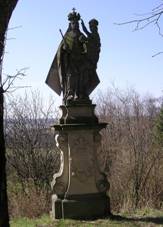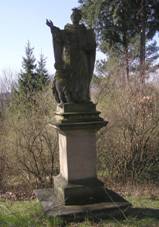 podnož s oblačnou základnou, na ní postava světce v životní velikosti v