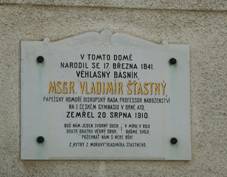 deska Zdroj C) Na rodném domě Msgr.Vladimíra Šťastného, básníka, papežského