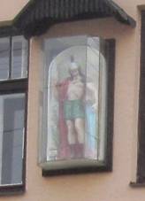 Ve skleněném arkýřku na hasičské zbrojnici Kamenný kříž Zdroj C)