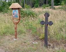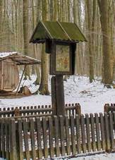 vsi Svatý obrázek S dřevěným kříkem, v lese