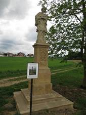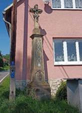 obnoven 1860, s reliéfem P.Marie Bolestné Kamenný kříž Ul.U