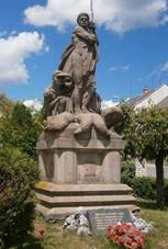 s vloženými reliéfy sv.Antonína Pad., P.Marie Bolestné a sv.Josefa Železný kříž U silnice na Bohuslavice, 1945 Železný kříž Severozápadně od vsi u silnice na
