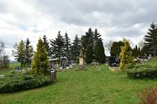 Hřbitov Nový, za obcí u cesty k Líšnici Brána a márnice Hřbitova za obcí u cesty k Líšnici Výklenková kaplička P.Marie Na hřbitově, dřevěná socha s dřevěnou