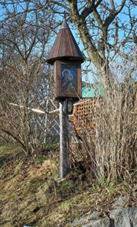 P.Marie s Jeíkem a Piety na čele podstavce Dřevěný kří V poli severně od hřbitova Dřevěný kří Nad vchodem do kaple Obrázek Nejsv.Trojice Na okraji vsi za č.p.84 Obrázek P.Marie U cesty pod nadhlednou