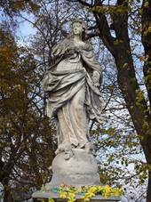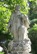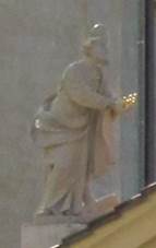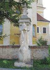 Socha sv. Jana Nepomuckého … Sousoší Loučení Krista s P. Marií … Socha Nejsv.Trojice Za kostelem na mohutném sloupu Socha Krista (?)