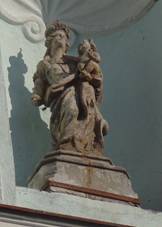 náměstí z pol. 18. stol. Socha sv. Aloise Zdroj C) před kostelem, z roku 1749 Socha sv. Josefa Zdroj C) před kostelem, z roku 1743 Socha P.Marie Zdroj C) Ve výklenku č.p.59 Boží muka Zdroj C) se soškami sv. Rocha,