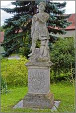 (Klein Niemtschitz) Zvonice Zdroj C) … Socha sv. Václava (sv.Víta) Zdroj C) u zvonice, z mušlového vápence,