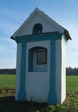 s bohatě iluzivním oltářem na stěně Hřbitov … Výklenková kaplička při silnici