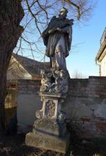 Socha sv. Jana Nepomuckého naproti kostelu Železný kříž Hřbitovní |