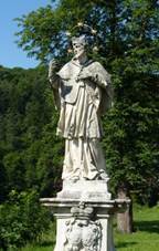 Šebestiána Na postamentu sloupu Socha P.Marie Šimperské Přemístěna ke kostelu 1910 Socha sv. Jana Nepomuckého Barokní