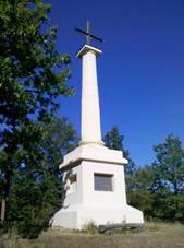 toskánském sloupu v masivní hranolové podložce byl osazen kříž ze silného