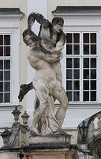 barokního díla neznámého autora. Hranolový sokl je zdoben na bocích volutami
