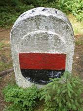 a 9/8, kde dosud stojí hraniční mezníky různých historických dob: sedm