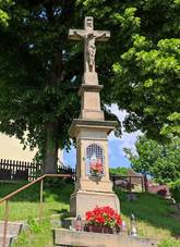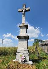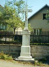 při silnici na Skřípov. Původní kamenný kříž po 1950 poškozen a odstraněn.