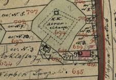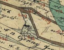 dva kilometry jihovýchodně od Jakubčovic, uprostřed luk, kolem 1840