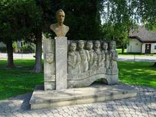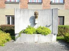 školou, sochař Miroslav Rybička, 1973 Pomník Františku Lískovi