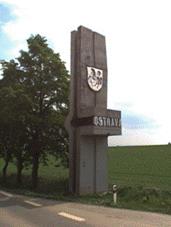 Památník padlým 1938-45 U hřbitova [Uvítací plastika Ostravy] U souběžné silnice s dálnicí,