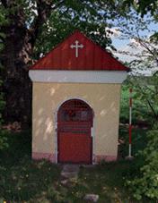 1950 přistavena sakristie. Zámecká kaple ... [Kaplička] 1851 poblíž školy v místě kde je