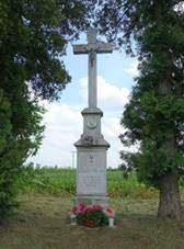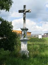 směrem ke Lhotce 1889 Kamenný kříž U cesty ke Klimkovicím, po první světové válce p. Vinz.Hajkem na