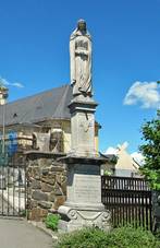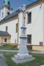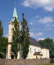 na místě staršího dřevěného kostela, nástavba věže 1909