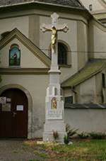 barokně přestavěn 1659-1714 a po 1850 doplněna kruchta Kaplička Nedaleko kostela Kaplička Jižně od kostela Hřbitov Kolem kostela Kamenný kříž U vstupu na hřbitov Smírčí