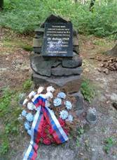 Plesnou. Nápis: NA TOMTO MÍSTĚ / ZAHYNULI HRDINNOU SMRTÍ / V LETECKÉM SOUBOJI