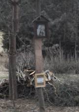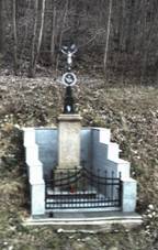 dvěma kříi, pokozený kámen staený drátem s dvojitým reliéfem kříe. 68 x 57 x 19 cm Památník padlým