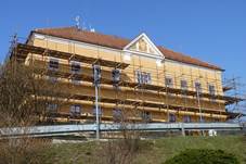 obehnán 2 metry vysokou zdí. V roce 1994, při opravě střechy