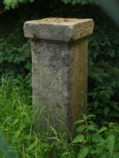 se zachovaly jen spodní kvádrové díly s četnými nápisy, stojí u silnice na