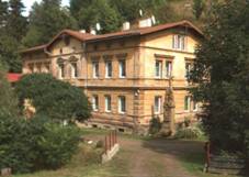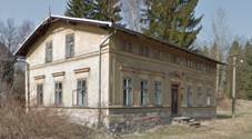 s neogotickou fasádou patra Neorenesanční s dřevěnými vyřezávanými balkony Dnes MŠ. Zdevastována předchozími přestavbami, 2013 zataplena a natřena děsivě zelenou barvou |