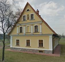 Pohledu na Broumov. Vnitřní zařízení pochází z doby baroka a empíru. Fara Zdroj 2) Čp.2, 1./2 18.stol., barokní, patrová