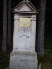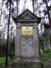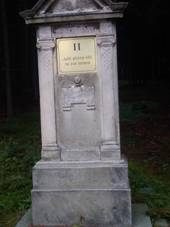 obce v lese, u kaple sv.Huberta, před jednotlivými zastaveními kamenné