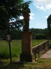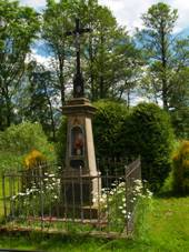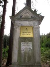 či sochy, pův.patrně s obrázkem na plechu či nápisová deska, u cesty k