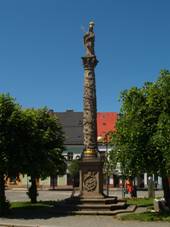 1849. Sloup barokního slohu, vysoký 3,8 metru spočívá na podstavci o třech