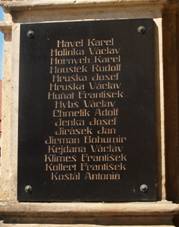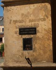 Obětem 2legionářů u Zborova na pilířích podloubí radnice s hrstí prstě