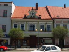 městu, 1842 vyhořela, upravena 1876 neogoticky. Náměstí čp.98.