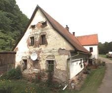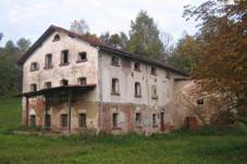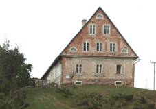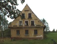 s mansardovou střechou, do 1990 MŠ, dnes propadlá střecha a stropy