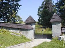 Památník Rudé armádě Nedaleko kostela Zrušený hrob Viktor Koppitz Na hřbitově u kostela, Hier ruhet Viktor Koppitz, k.u.k. Inft. Reg. No 1 gest.21.9.1915 im 24. Lebensjahre