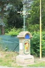 Na sloupu, u polní cesty, socha chybí Kamenný kříž