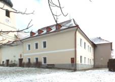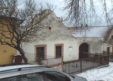 průčelí a sakristií v ose kostela na východním konci. Fara …