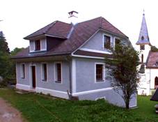 budovy: kostel sv. Jana Nepomuckého, fara a dům, který dnes funguje jako
