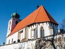 bývalém předhradí, pol.13.stol., připojená raně gotická boční kaple. Opevněn