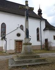 sv.Kříže Socha sv.Jana Nepomuckého z roku 1736 na návsi Socha P.Marie Pomocné Na křižovatce cesty do Valtína a