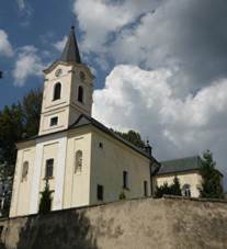 gotického kostela, loď klasicistní, kolmo na původní stavbu, 1806-7,
