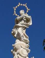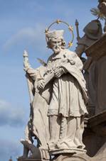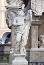 s nímž spolupracoval kameník Frant. Neuwirt. Socha P. Marie Immaculaty Na vrcholu oblakového sloupu stojí na zeměkouli Socha sv.Jana Nepomuckého