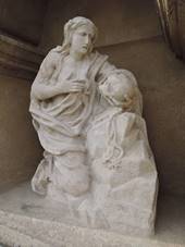 s mramorovým náhrobkem Zachariáše a Kateřiny obklopeným dekorativní