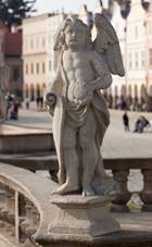 Silena Na horní kašně, s malým Dionýsem v náručí. Dolní kašna Východní polovina náměstí, dnes se sochou sv. Markéty, vznikala již za Zachariáše